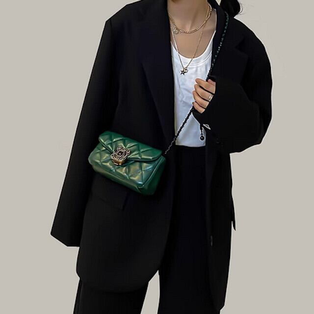 バッグ レディース ショルダーバッグ レザー レトロ チェーン 小ぶり ミニバッグ おしゃれ お出かけ デート 結婚式 かわいい かっこいい グリーン/ブラック