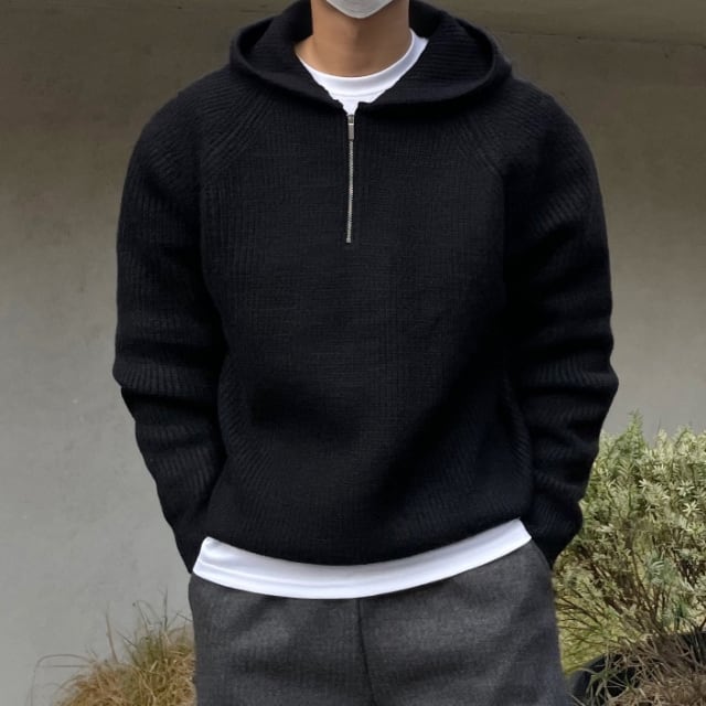 【予約販売】 ニット ジップアップ フード付き フーディ セーター ブラック グレー メンズ シンプル こなれ感 お洒落 韓国 トレンド 秋冬 M/L/XL