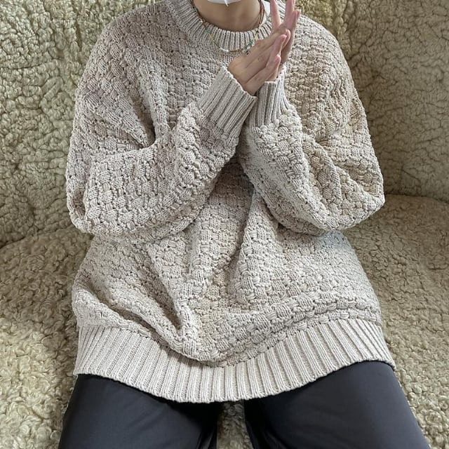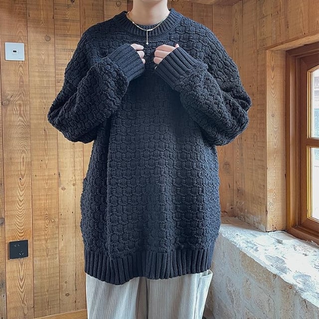 【予約販売】ニット セーター オーバーサイズ ケーブル編み ルーズ 無地 メンズ ブラック/ベージュ/ネイビー こなれ感 ストリート お洒落 韓国 トレンド 秋冬 M/L/XL/2XL