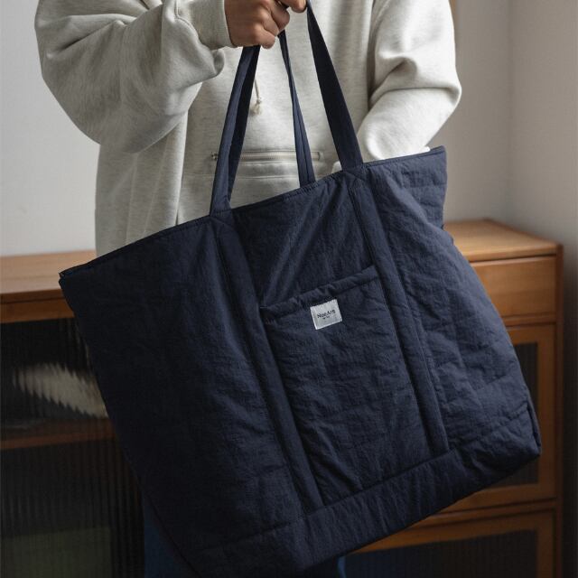 【予約販売】トートバッグ キルティング 大容量 レザー メンズ シンプル 通勤 通学 ダークグリーン/ブラウン/カーキ/ネイビー/レッド/オフホワイト シック A4 こなれ感 お洒落 韓国 トレンド