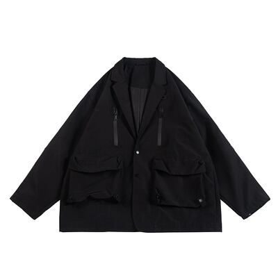 【予約販売】ジャケット アウター ブラック 無地 ポケット ジップ ショート丈 メンズ お洒落 こなれ感 シック トレンド 秋 冬 M/L/XL/2XL