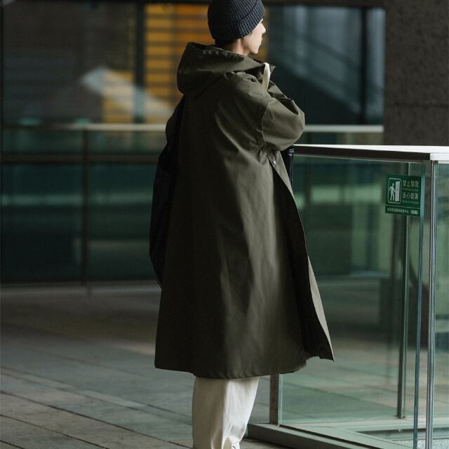 【予約販売】コート ミディアム丈 プルオーバー パーカー フーディ 地 オーバーサイズ ネイビー/カーキ カジュアル シック シンプル 無地 防寒 お洒落 こなれ感 ベーシック 秋冬 M/L/XL