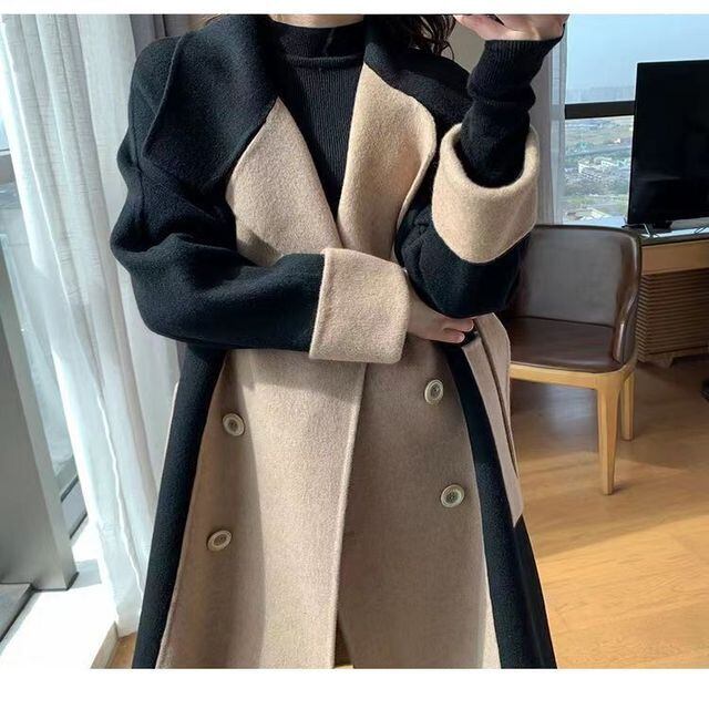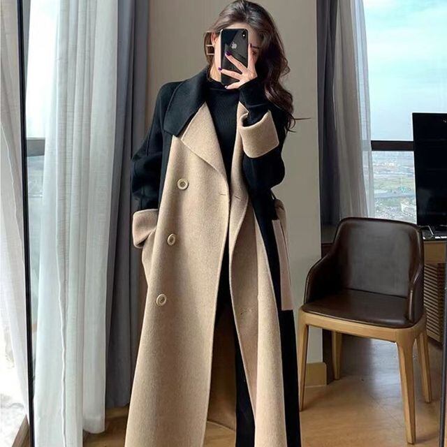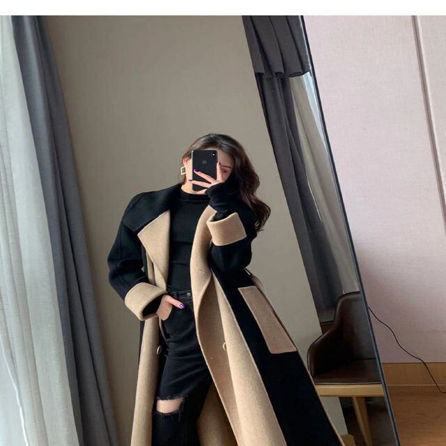【予約販売】コート レディース アウター ロングコート バイカラー 上品 かわいい ブラック×ベージュ S/M/L/XL/2XL/3XL