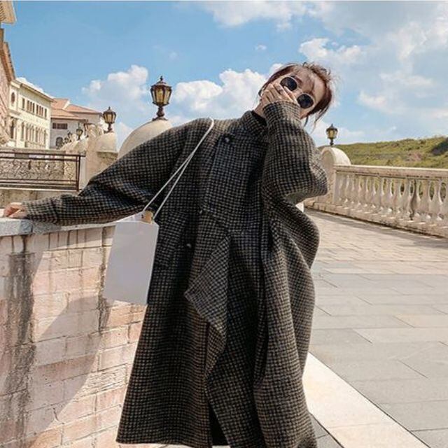 【予約販売】 レディース ロング丈 ロングコート 秋冬 チェック柄 ウールコート カシミヤコクーンツイードコート かっこいい シンプル スタイリッシュ おしゃれ こなれ感 ブラック グリーン XS/S/M/L/XL/2XL/3XL