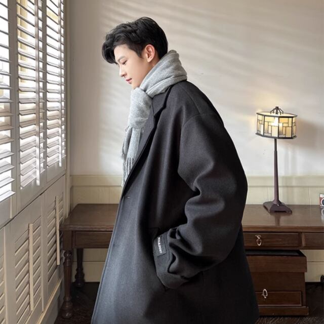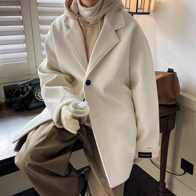 【予約販売】コート メンズ シンプル アウター ホワイト ブラック グレーカーキ ショート丈 通学 通勤 防寒 お洒落 こなれ感 ベーシック 秋冬 大きいサイズ M/L/XL/2XL/3XL