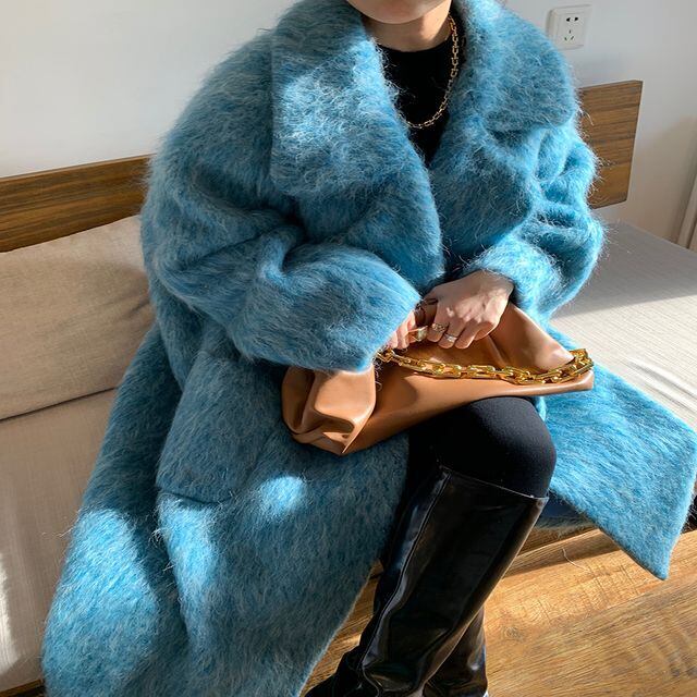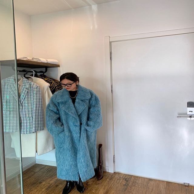 【予約販売】コート レディース ロングコート ボア ウール シンプル スタイリッシュ おしゃれ ブルー フリーサイズ