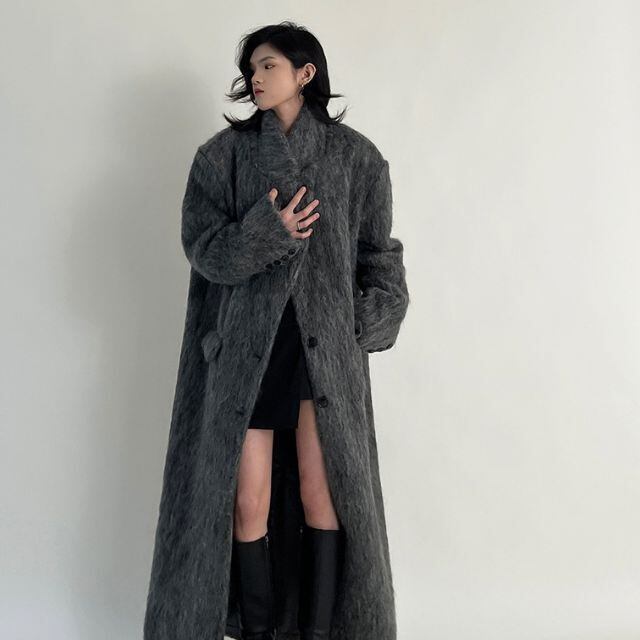 【予約販売】ロングコート レディース シンプル ベーシック かっこいい シンプル スタイリッシュ S/M/L ダークグレー