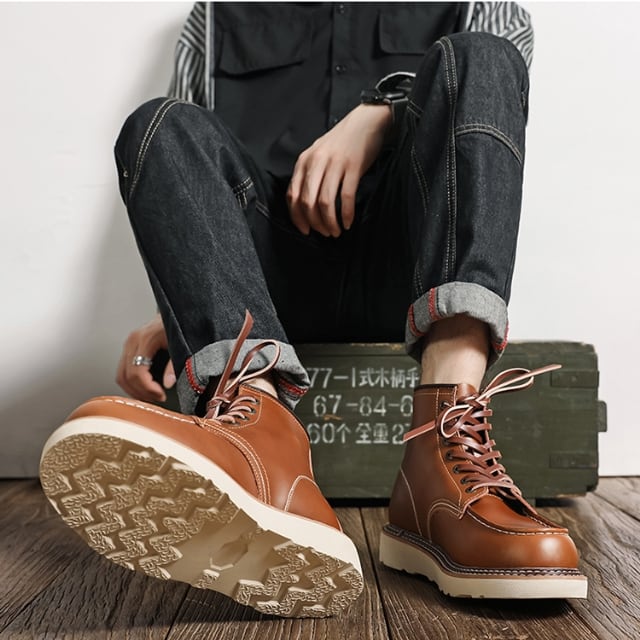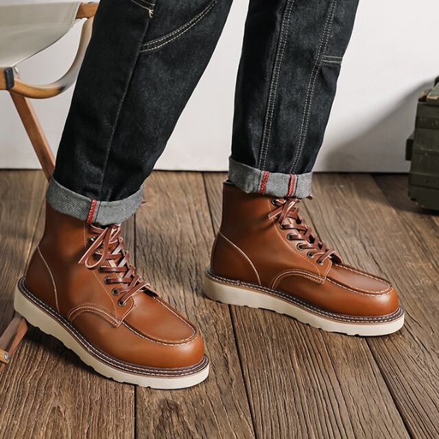 【予約販売】ブーツ レザー 革靴 ハイカット メンズ 靴 ブラウン 編み上げ お洒落レースアップ お洒落 韓国 トレンド カジュアル 通勤 通学 カジュアル 24cm/24.5cm/25cm/25.5cm/26cm/26.5cm/27cm