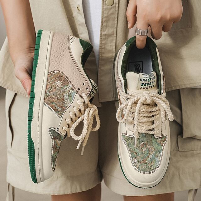 【予約販売】スニーカー 韓国 メンズ スニーカー カモフラージュ柄 ベージュ 靴 グリーン ブラウン お洒落 カジュアル ストリート 24cm/24.5cm/25cm/25.5cm/26cm/26.5cm/27cm