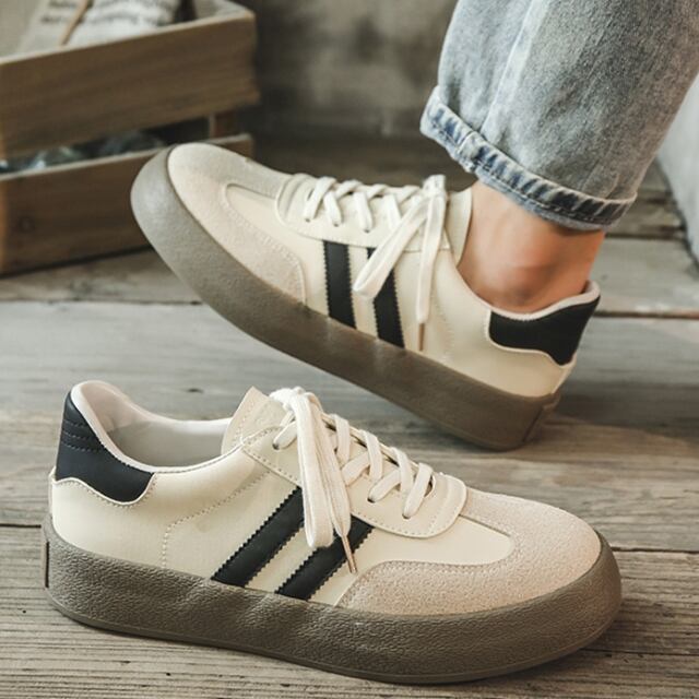 【予約販売】スニーカー シューズ メンズ ライン ベーシック シンプル 靴 デザイン ブラック 黒 アイボリー お洒落 カジュアル シック 韓国 トレンド 24.5cm/25cm/25.5cm/26cm/26.5cm/27cm