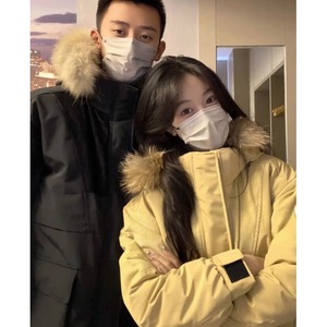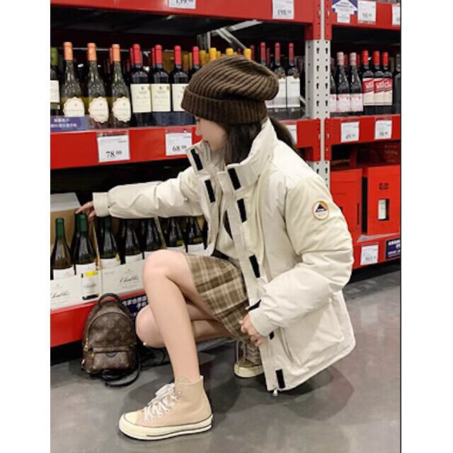 ダウン レディース ユニセックス アウター フード付き ファー 着脱可 おしゃれ かっこいい 暖かい 冬 レジャー お出かけ お揃い ミドル丈 カーキ/ブラック/ベージュ M/L/XL/2XL