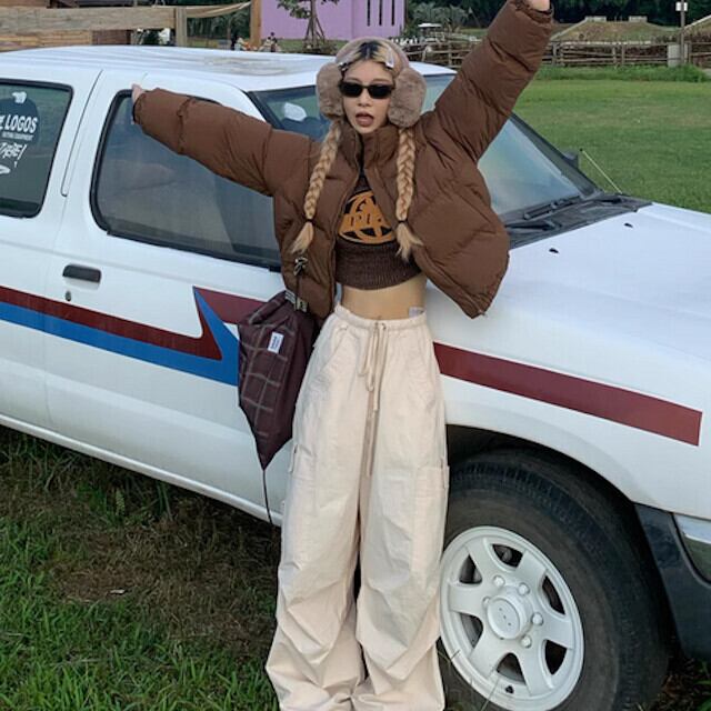 ダウン レディース アウター ショート丈 かわいい おしゃれ こなれ感 あたたかい 防寒 冬 レジャー お出かけ カラバリ豊富 ブラウン/ピンク/グレー S/M/L