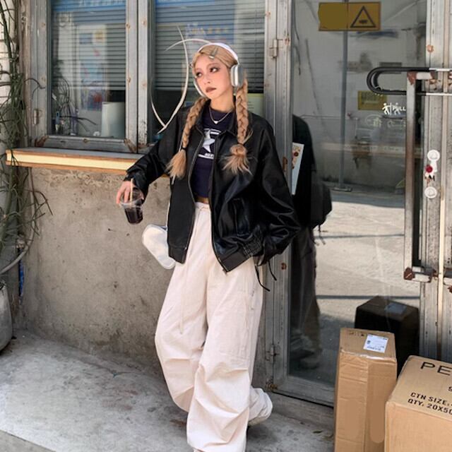 レザージャケット レディース アウター かっこいい ストリート おしゃれ メンズライク ブラック S/M/L