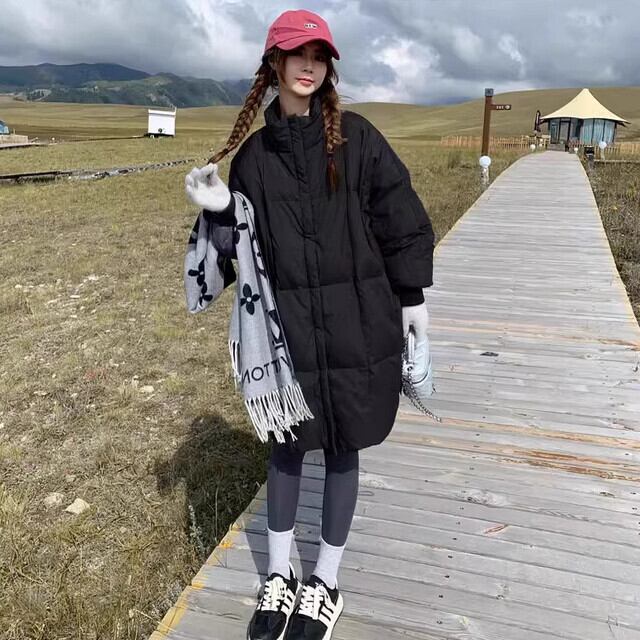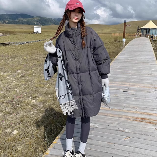 ダウン レディース アウター ミドル丈 かわいい おしゃれ こなれ感 あたたかい 防寒 冬 レジャー お出かけ カジュアル シンプル ブラック/カーキ/グレー S/M/L