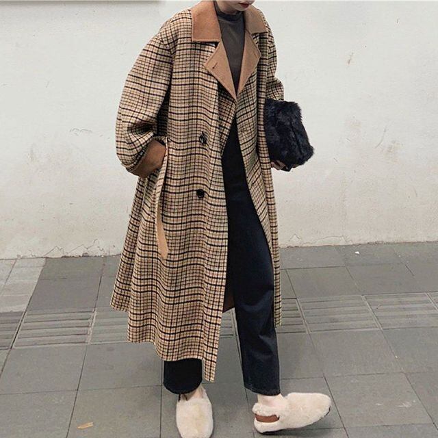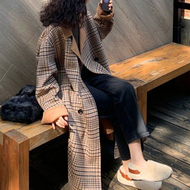 【予約販売】レディース アウター シンプル チェック カジュアル おしゃれ かっこいい オーバーシルエット ツイードジャケット 秋冬 ブラウン L/XL