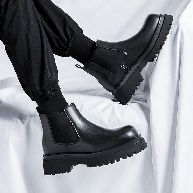【予約販売】ブーツ メンズ サイドゴアブーツ ハイカット ゴツ底 厚底 艶 靴 ブラック 黒 お洒落 韓国 トレンド カジュアル 24cm/24.5cm/25cm/25.5cm/26cm/26.5cm/27cm