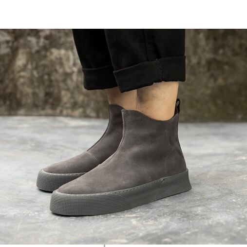 【予約販売】ブーツ メンズ ハイカット スエード グレー 靴 ジップアップ シンプル お洒落 韓国 トレンド カジュアル 24cm/24.5cm/25cm/25.5cm/26cm/26.5cm/27cm