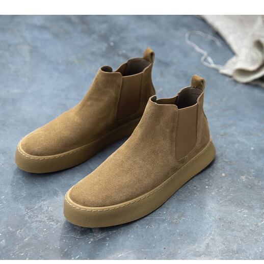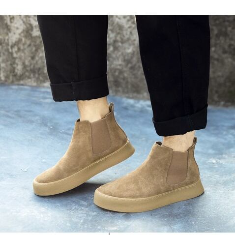 【予約販売】ブーツ メンズ スエード ベージュ 靴 サイドゴア ハイカット シンプル お洒落 韓国 トレンド レトロ ベーシック カジュアル 24cm/24.5cm/25cm/25.5cm/26cm/26.5cm