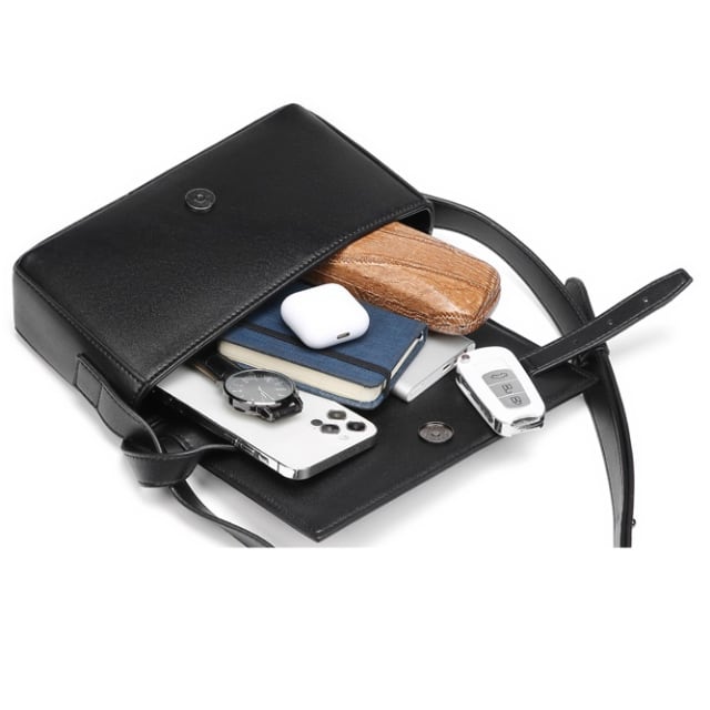 【予約販売】ショルダーバッグ シンプル メンズ クラシカル スクエア 2Way 華奢 ミニバッグ ブラック 斜め掛け メッセンジャー 黒 シック こなれ感 お洒落 韓国 トレンド