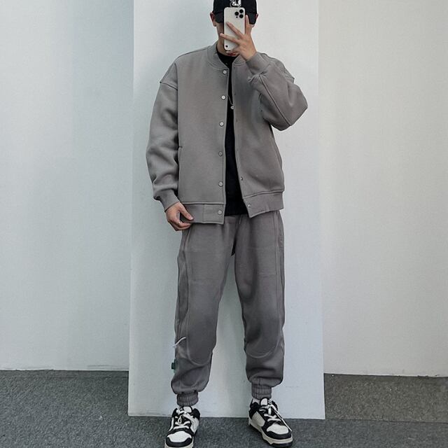 【予約販売】メンズ セットアップ 上下 長袖 裏起毛 ボタン ライトグレー ダークグレー スエット ルーズ 男前 スエット 韓国 パンツ セット ジム カジュアル 部屋着 リラックス ルームウエア 韓国 トレンド 大きいサイズ M/L/XL