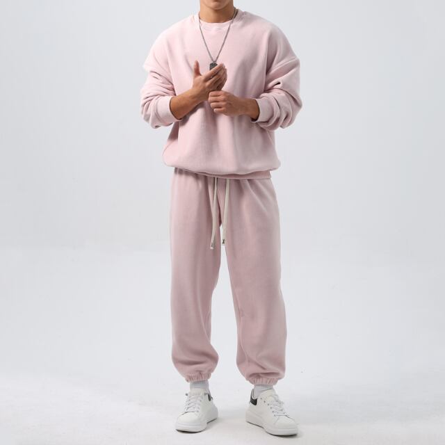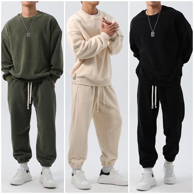【予約販売】メンズ セットアップ スエット 上下 長袖 無地 カーキ/ブラック/アイボリー/ピンク/ブルー ルーズ 男前 スエット 韓国 パンツ セット ジム カジュアル 部屋着 リラックス ルームウエア 韓国 トレンド 大きいサイズ M/L/XL/2XL