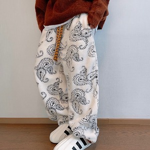 【予約販売】スエットパンツ ボア 防寒 ペイズリー柄 刺繍 ボトムス メンズ カジュアル パンツ ダンス ストリート ルーズ ブラック ホワイト こなれ感 お洒落 韓国 トレンド M/L/XL/2XL