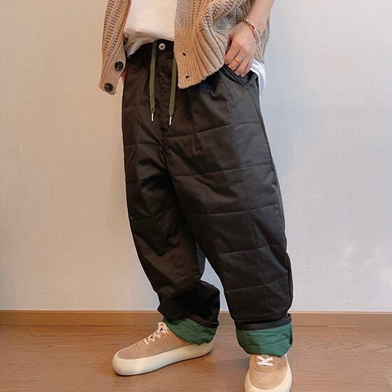 【予約販売】パンツ キルティング 防寒 ボトムス メンズ カジュアル パンツ ダンス ストリート ルーズ ブラック こなれ感 お洒落 韓国 トレンド M/L/XL/2XL
