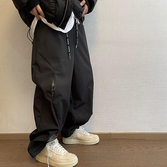 【予約販売】パンツ 裏起毛 防寒 ボトムス メンズ 黒 カジュアル パンツ ダンス ストリート ルーズ ブラック こなれ感 お洒落 韓国 トレンド M/L/XL/2XL