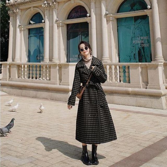 【予約販売】チェック コート ロング丈 襟 ビックシルエット ウールコート レディース 秋冬 アウター S/M/L/XL/2XL