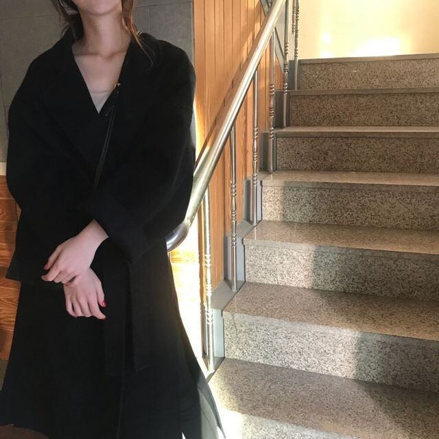 【予約販売】ガウンコート レディース アウター かっこいい かわいい ウール ロング丈イエロー/ブラック S/M/L