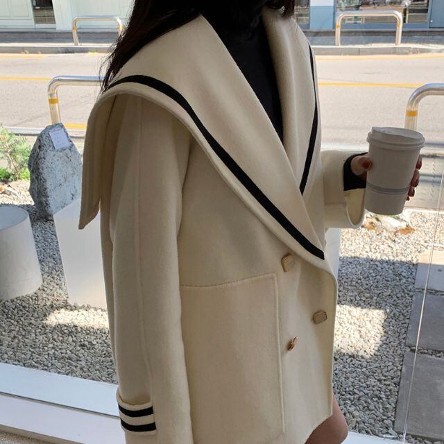 【予約販売】ガウンコート レディース アウター ダブルブレス ラージポケット長袖 大きな襟 かわいい S/M/L