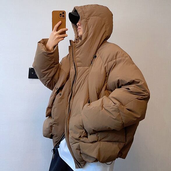 【予約販売】ダウンコート メンズ 無地 フード付き ホワイトダック アウター ブラック ベージュ ショート丈 防寒 お洒落 こなれ感 ベーシック 秋冬 大きいサイズ M/L/XL/2XL