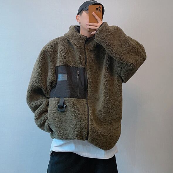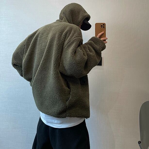 【予約販売】ボアブルゾン アウター フード付き カーキ 総ボア もこもこ アウトドア 冬 防寒 ジャケット ショート丈 メンズ カジュアル 男前 こなれ感 お洒落 韓国 トレンド 秋 冬 M/L/XL/2XL