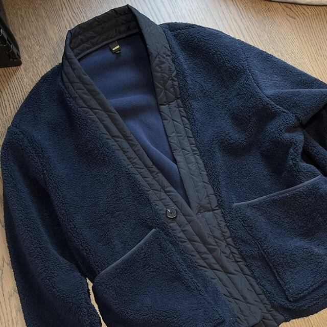 【予約販売】ボアブルゾン アウター ネイビー 紺 総ボア もこもこ アウトドア ガウン 羽織り 和風 着物風 冬 防寒 ジャケット ショート丈 メンズ カジュアル 男前 こなれ感 お洒落 韓国 トレンド 秋 冬 M/L/XL/2XL