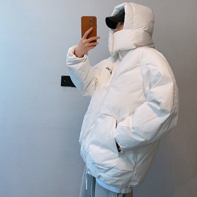 【予約販売】ダウンコート メンズ 無地 フード付き ホワイトダック アウター ブラック ホワイト ショート丈 防寒 お洒落 こなれ感 ベーシック 秋冬 大きいサイズ M/L/XL/2XL