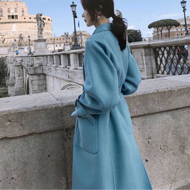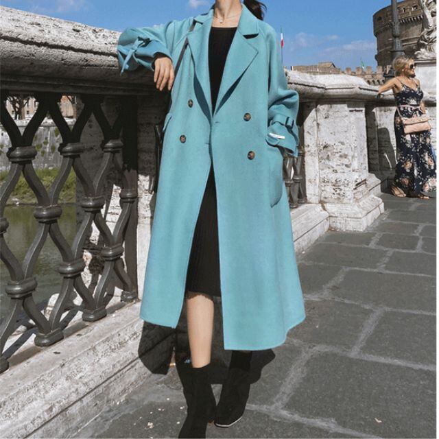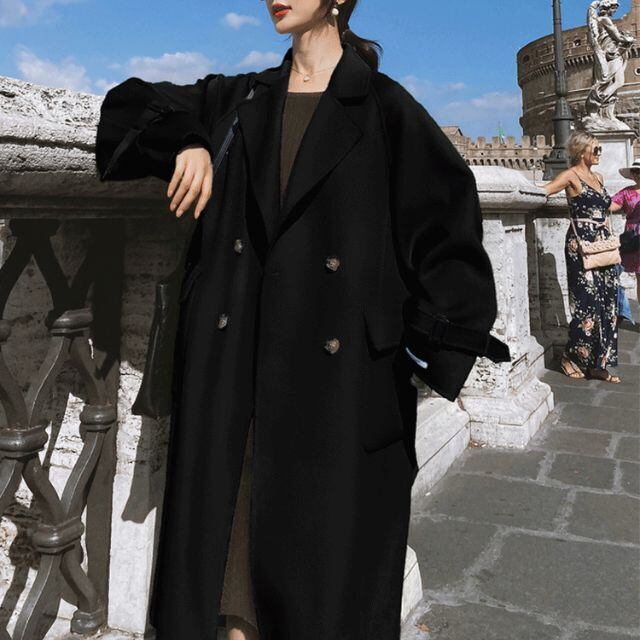 【予約販売】ガウン コート ロング丈 襟 ビックシルエット ウール カシミアコート レディース 秋冬 アウター XS/S/M/L/XL