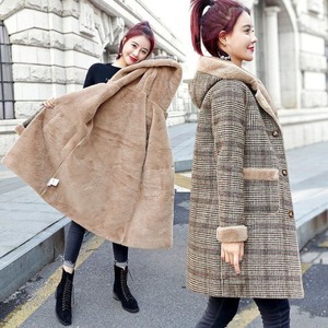 【予約販売】チェックコート レディース アウター かわいい フード ふわふわ 毛皮 あたたかい S/M/L/XL/2XL