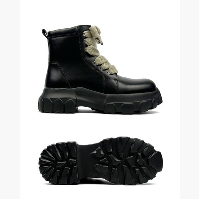 【予約販売】ブーツ メンズ ビッグシルエット ゴツ底 厚底 靴 ブラック 黒 ハイカット 太紐 レースアップ お洒落 韓国 トレンド カジュアル 24cm/24.5cm/25cm/25.5cm/26cm/26.5cm/27cm/27.5cm