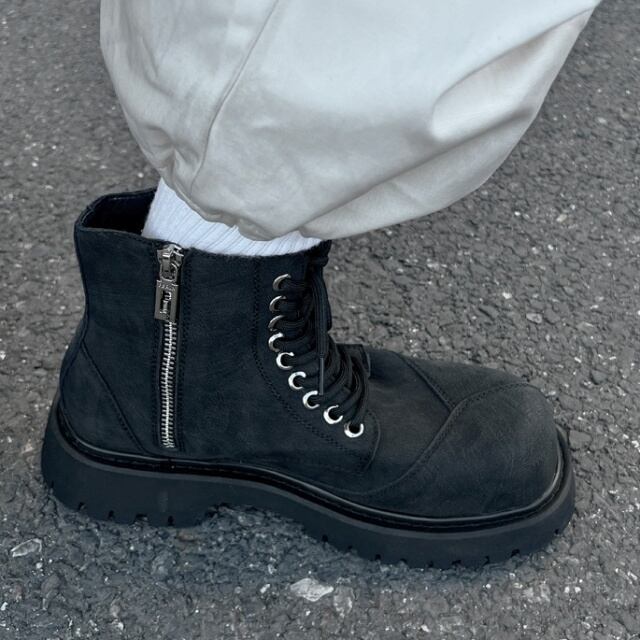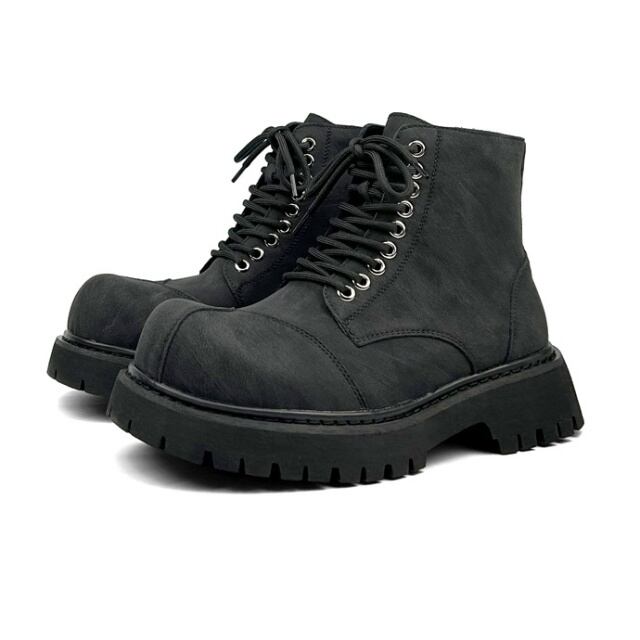 【予約販売】ブーツ メンズ ビッグシルエット ゴツ底 厚底 靴 ブラック 黒 ハイカット お洒落 韓国 トレンド カジュアル ビンテージ風 24cm/24.5cm/25cm/25.5cm/26cm/26.5cm/27cm