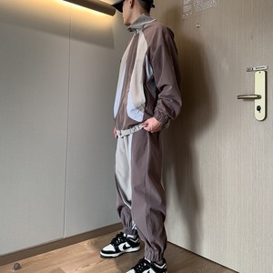 【予約販売】メンズ セットアップ 上下 長袖 シンプル 無地 ライトブルー ブラウン スエット ルーズ 男前 スエット 韓国 パンツ ジム カジュアル ストリート リラックス ダンス 韓国 トレンド S/M/L/XL