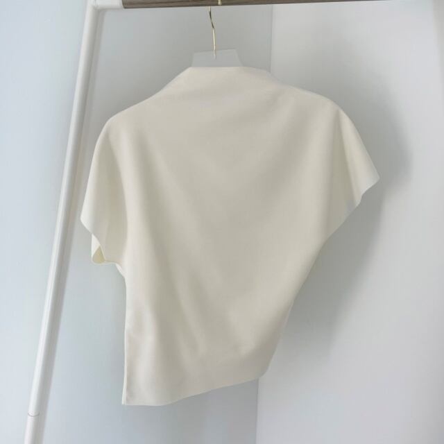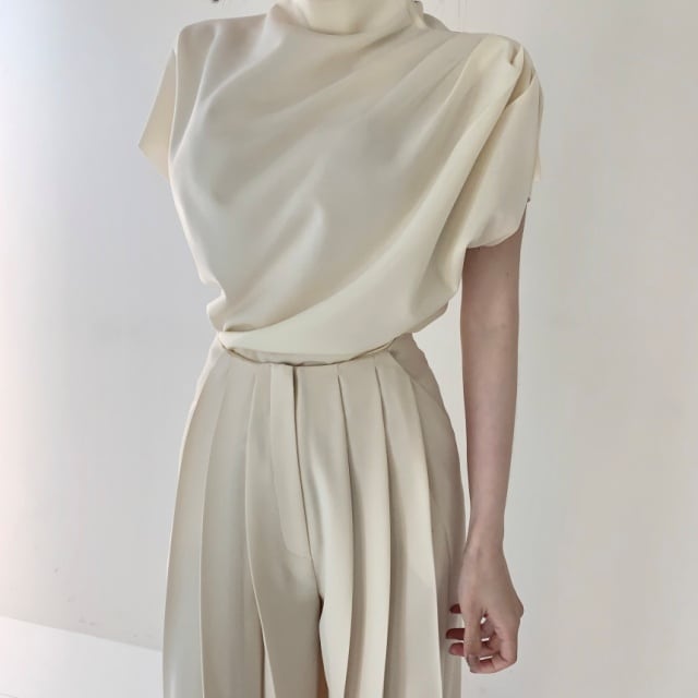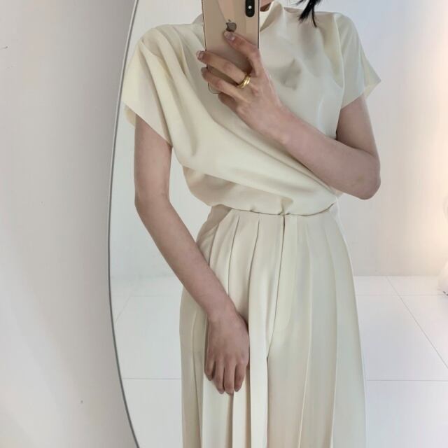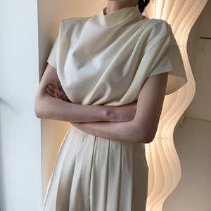 【予約販売】 トップス カットソー ハイネック 半袖 ドレープ レディース アイボリー フェミニン こなれ感 大人可愛い おしゃれ 韓国 通勤 OL 春 夏 デート トレンド S/M