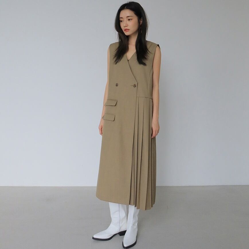 【予約販売】ワンピース レディース ジャンバースカート ノースリーブ Vネック ロングワンピース プリーツ ブラック ベージュフェミニン 体型カバー こなれ感 ワンピ 大人可愛い シンプル エレガント おしゃれ 韓国 旅行 バカンス 春 夏 トレンド S/M/L