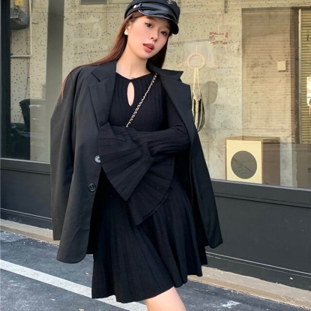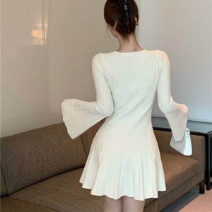 【予約販売】ワンピース レディース ベルスリーブ ミニワンピース フレア ニットワンピース Aライン ブラック オフホワイト フェミニン 体型カバー こなれ感 ワンピ 大人可愛い シンプル エレガント おしゃれ 韓国 旅行 バカンス 春 夏 トレンド フリー
