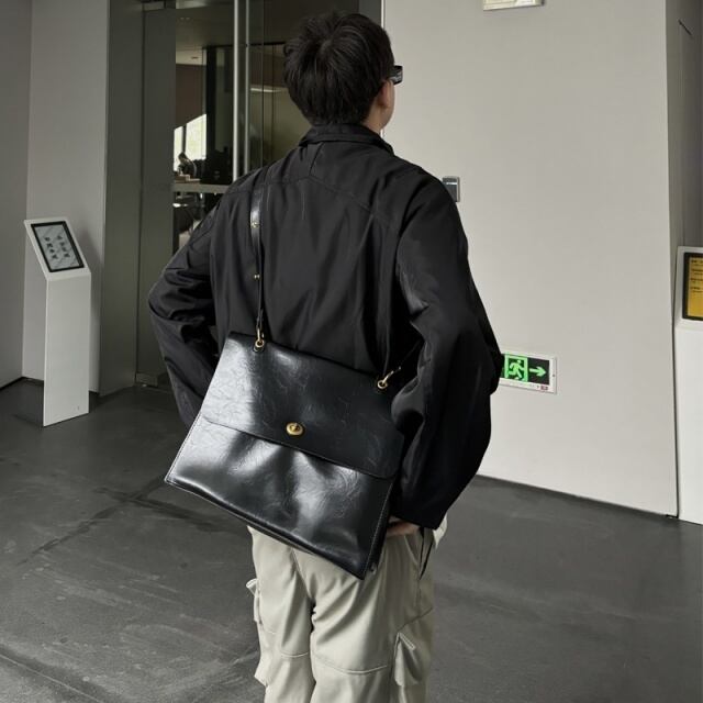 【予約販売】ショルダーバッグ カバン 斜め掛け 鞄 大容量 レザー ブリーフケース メンズ シンプル PUレザー 通勤 通学 ブラック シック こなれ感 お洒落 韓国 トレンド
