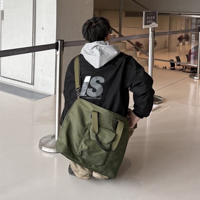【予約販売】ショルダーバッグ メッセンジャー 斜め掛け ナイロン 大容量 メンズ シンプル 通勤 通学 カーキ シック 旅行 A4 こなれ感 お洒落 韓国 トレンド