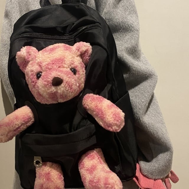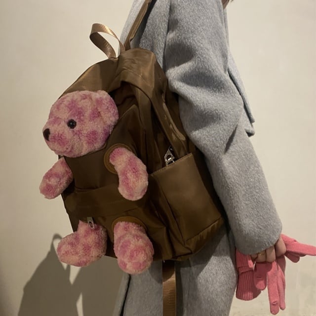 【予約販売】リュック バックパック メンズ ユニセックス ブラウン ブラック ぬいぐるみ クマ テディベア 可愛い 大容量 スポーツ ストリート 旅行 こなれ感 お洒落 韓国 トレンド