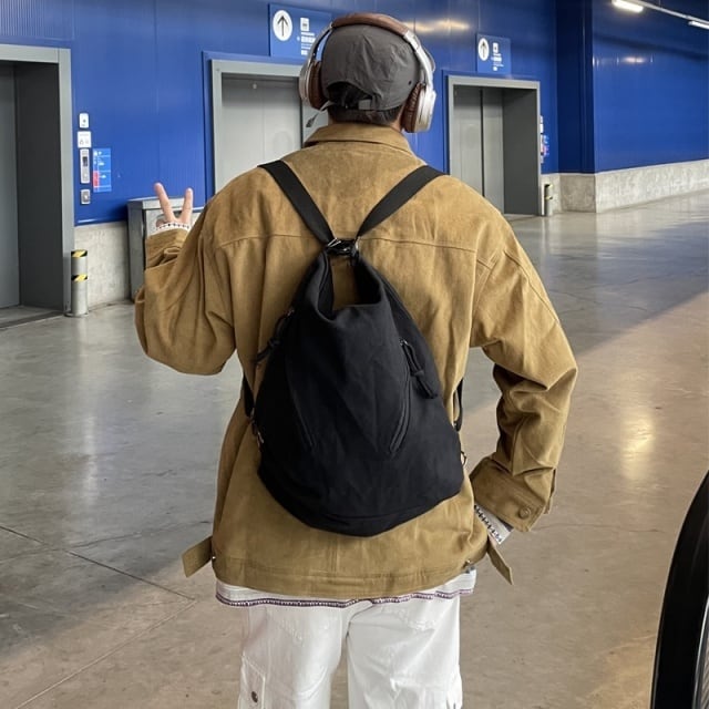 【予約販売】ショルダーバッグ メッセンジャー リュック 2WAY 斜め掛け キャンバス 大容量 メンズ シンプル 通勤 通学 ブラック 黒 シック 旅行 A4 こなれ感 お洒落 韓国 トレンド
