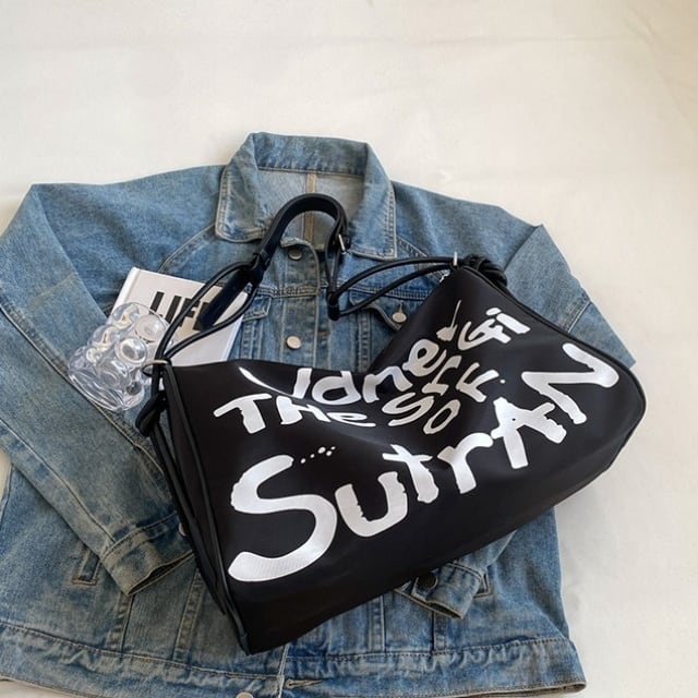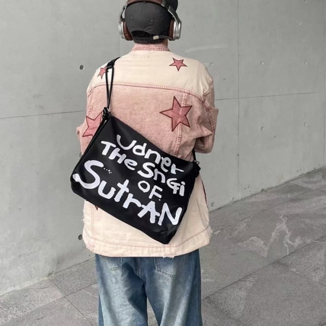 【予約販売】ショルダーバッグ シンプル ナイロン グラフィック柄 落書き風 メンズ スクエア 黒 ブラック クラシカル 斜め掛け ボディバッグ シック こなれ感 お洒落 韓国 トレンド