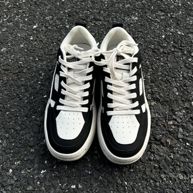 【予約販売】スニーカー 韓国 メンズ ゴツ底 厚底 靴 白 オフホワイト ブラック 黒 デザイン お洒落 カジュアル ストリート スケボー スケーター ダンス 24cm/24.5cm/25cm/25.5cm/26cm/26.5cm/27cm