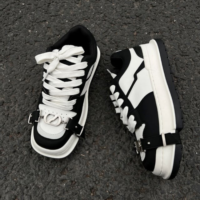 【予約販売】スニーカー 韓国 メンズ スニーカー ゴツ底 厚底 ベルト 靴 白 ホワイト ブラック 黒 デザイン お洒落 カジュアル ストリート ダンス24.5cm/25cm/25.5cm/26cm/26.5cm/27cm